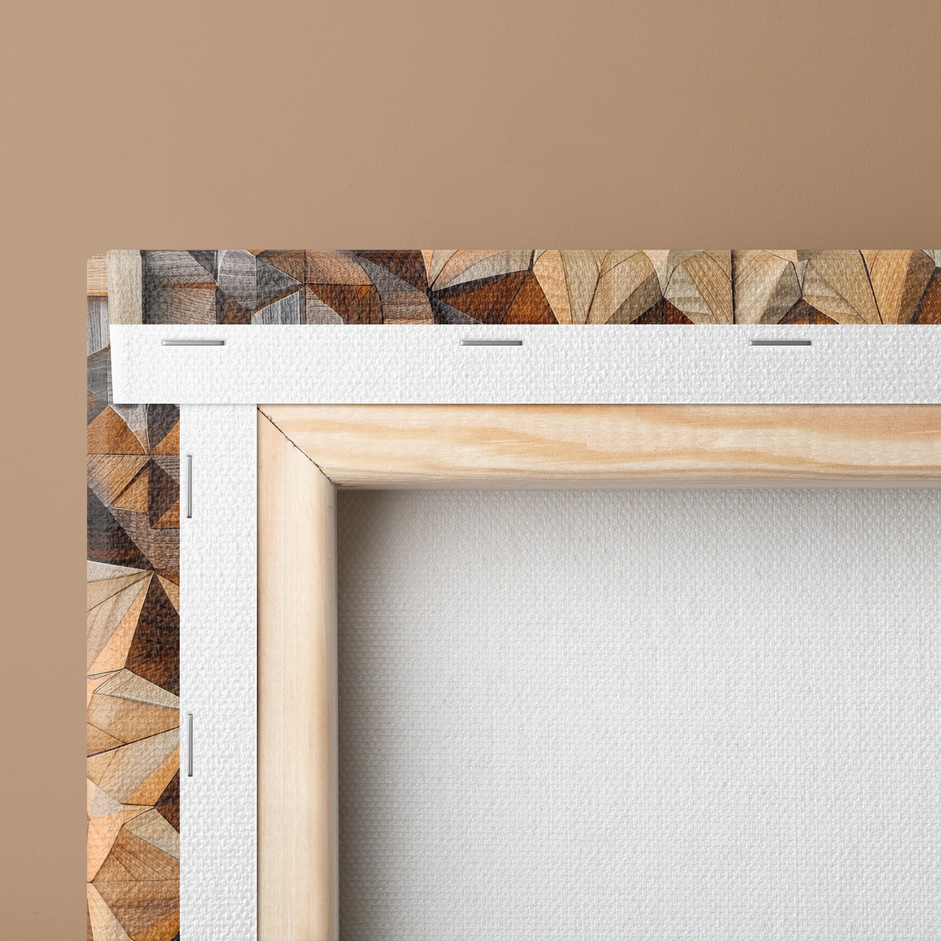 Each canvas is tightly folded and stapled on finger-jointed knotless European pine stretcher bars, with wedges for tension, using sustainably sourced wood for enduring strength and eco-friendly quality.
