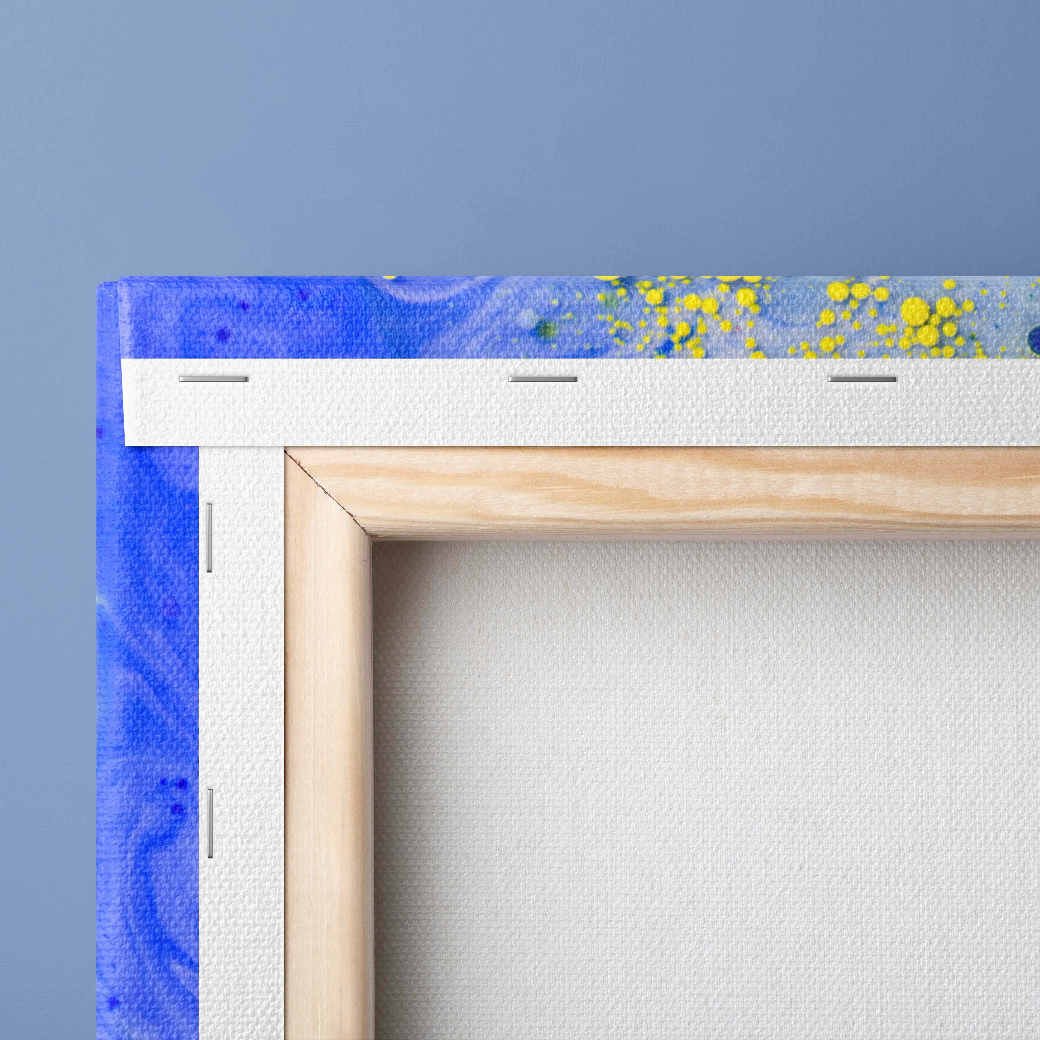 Each canvas is tightly folded and stapled on finger-jointed knotless European pine stretcher bars, with wedges for tension, using sustainably sourced wood for enduring strength and eco-friendly quality.