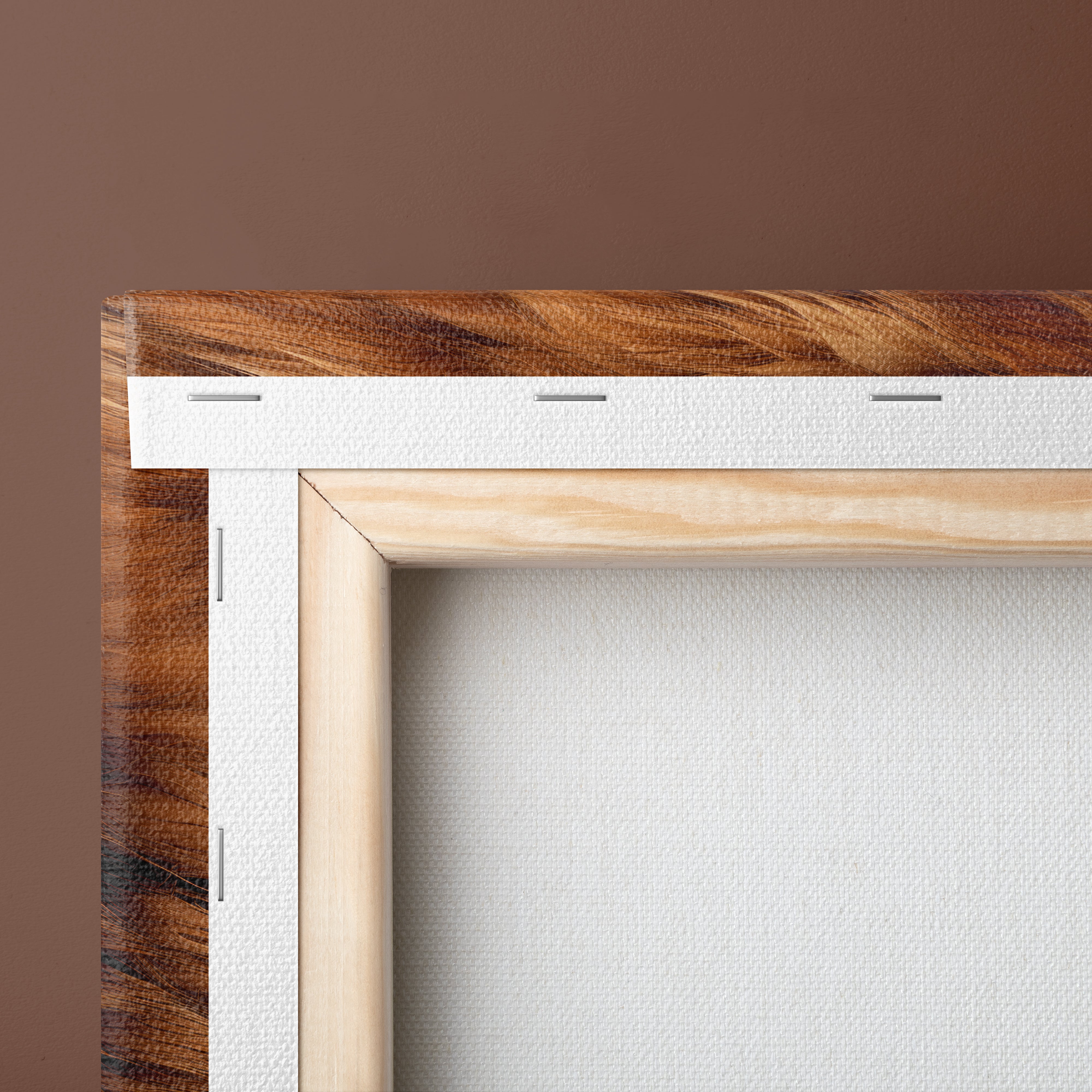 Each canvas is tightly folded and stapled on finger-jointed knotless European pine stretcher bars, with wedges for tension, using sustainably sourced wood for enduring strength and eco-friendly quality.
