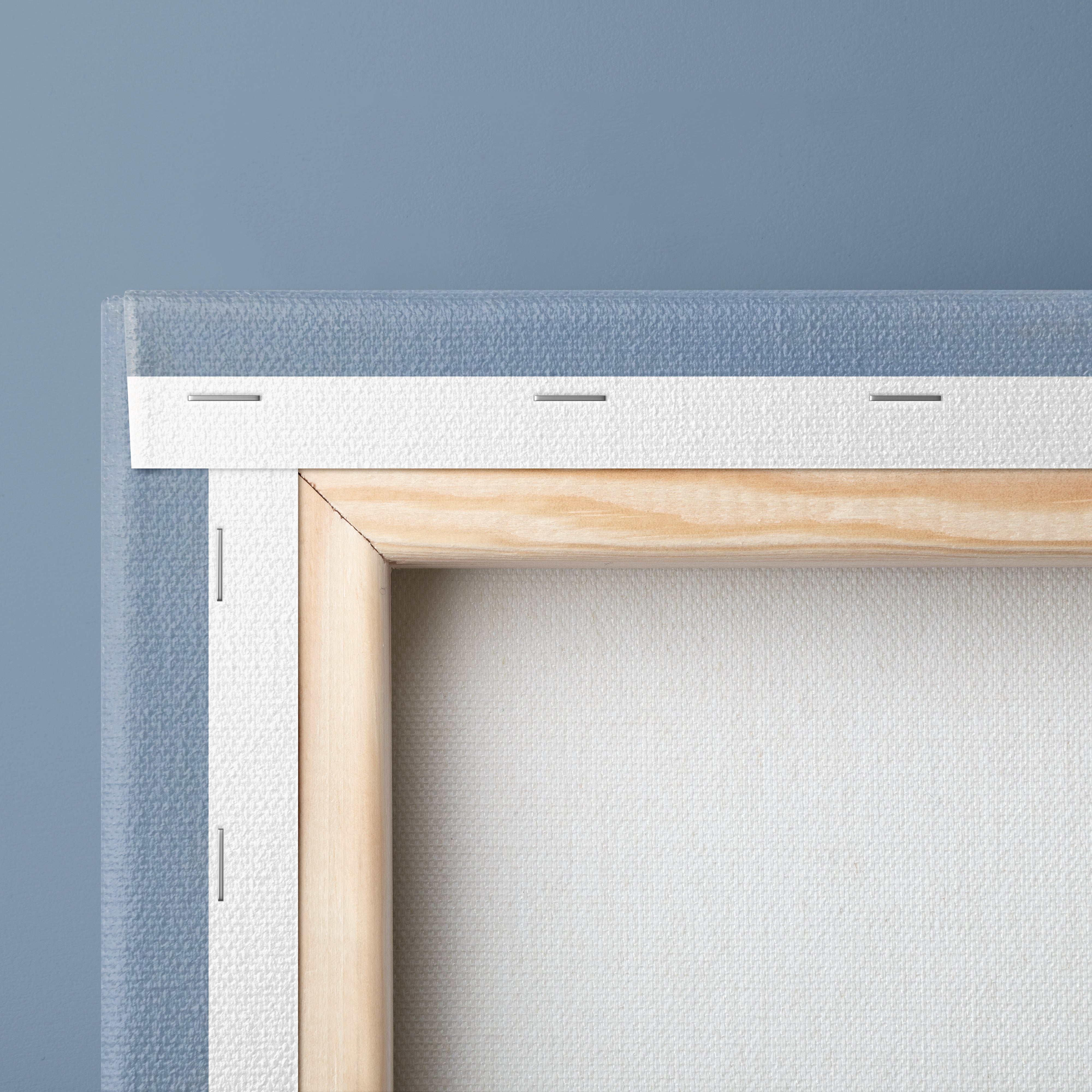 Each canvas is tightly folded and stapled on finger-jointed knotless European pine stretcher bars, with wedges for tension, using sustainably sourced wood for enduring strength and eco-friendly quality.