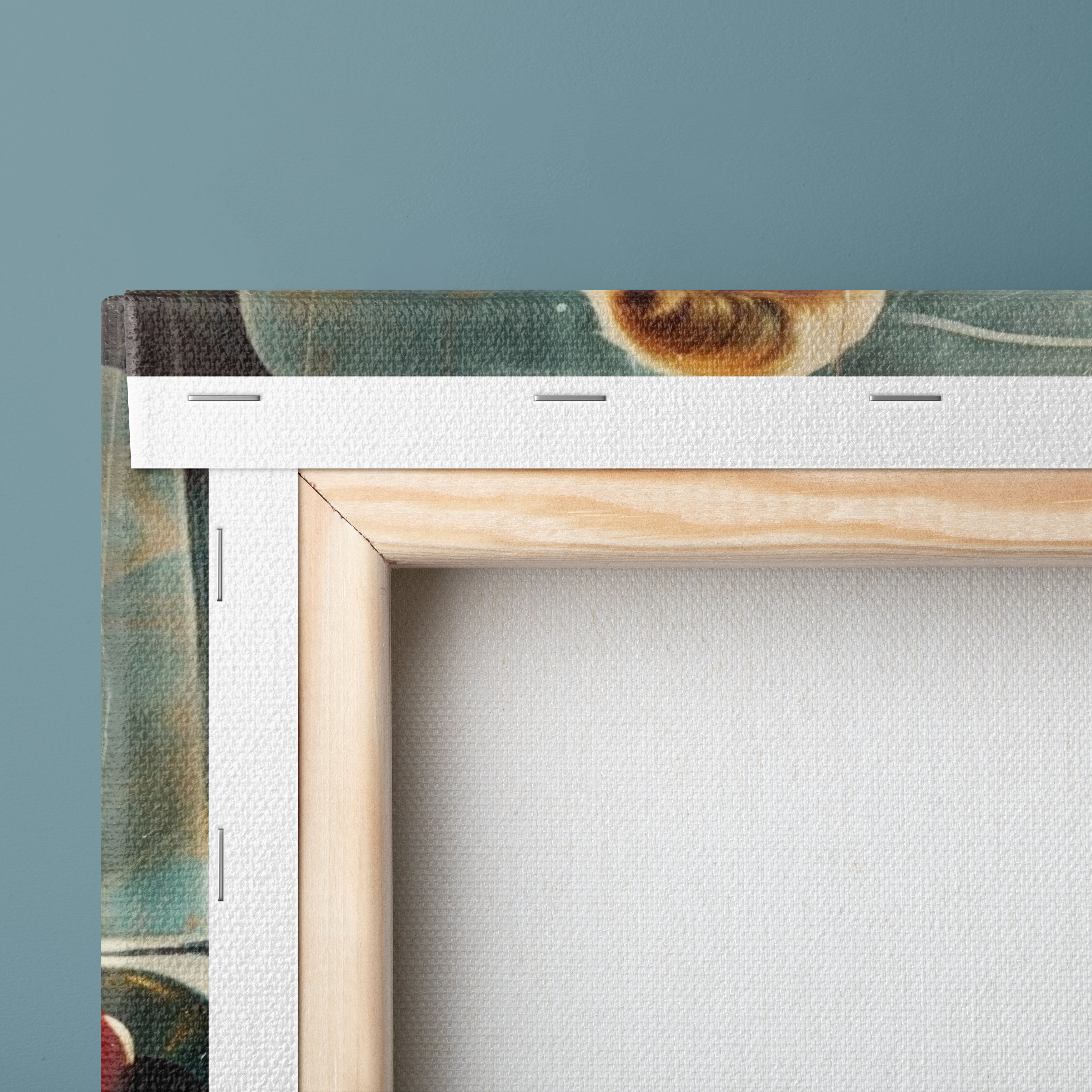 Each canvas is tightly folded and stapled on finger-jointed knotless European pine stretcher bars, with wedges for tension, using sustainably sourced wood for enduring strength and eco-friendly quality.