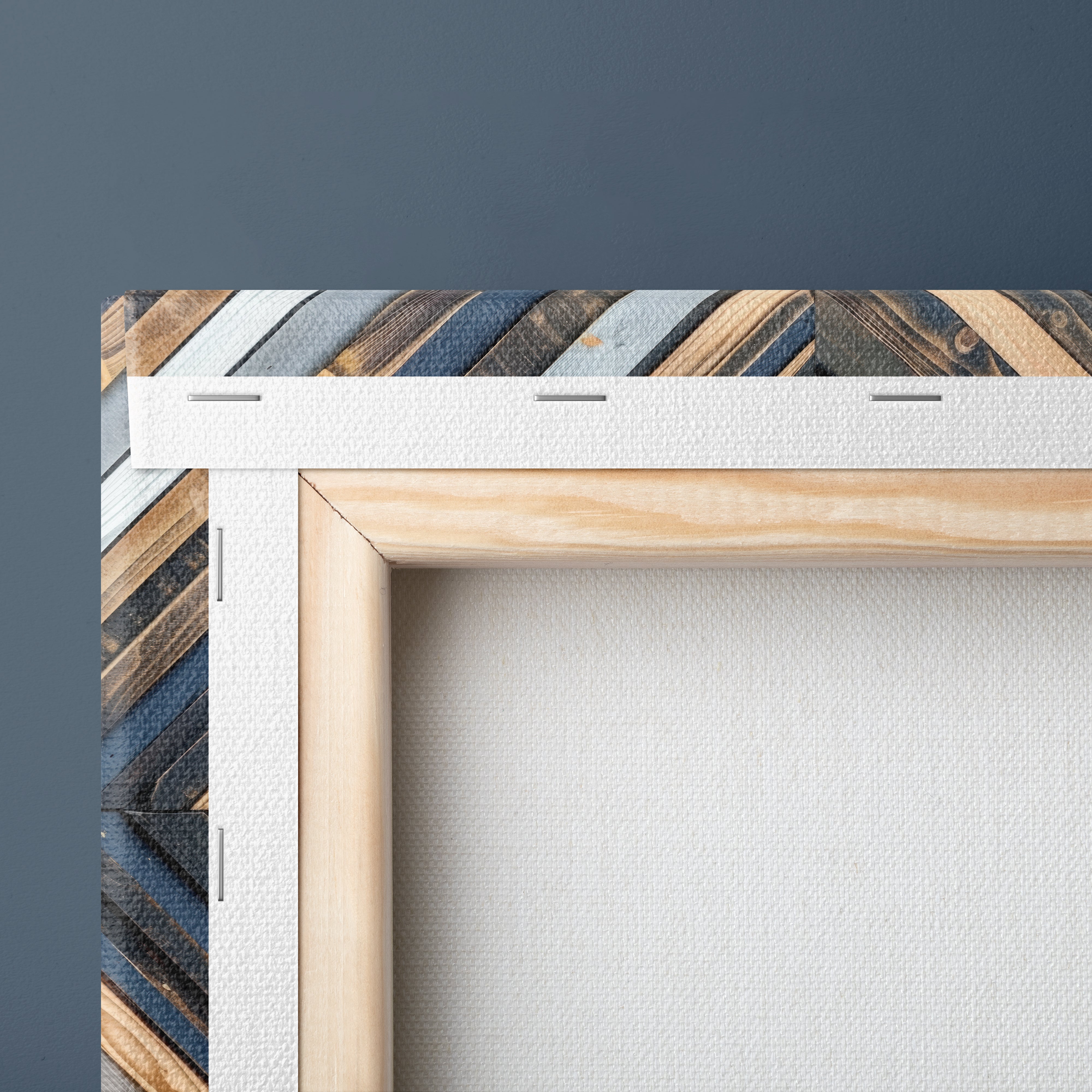 Each canvas is tightly folded and stapled on finger-jointed knotless European pine stretcher bars, with wedges for tension, using sustainably sourced wood for enduring strength and eco-friendly quality.