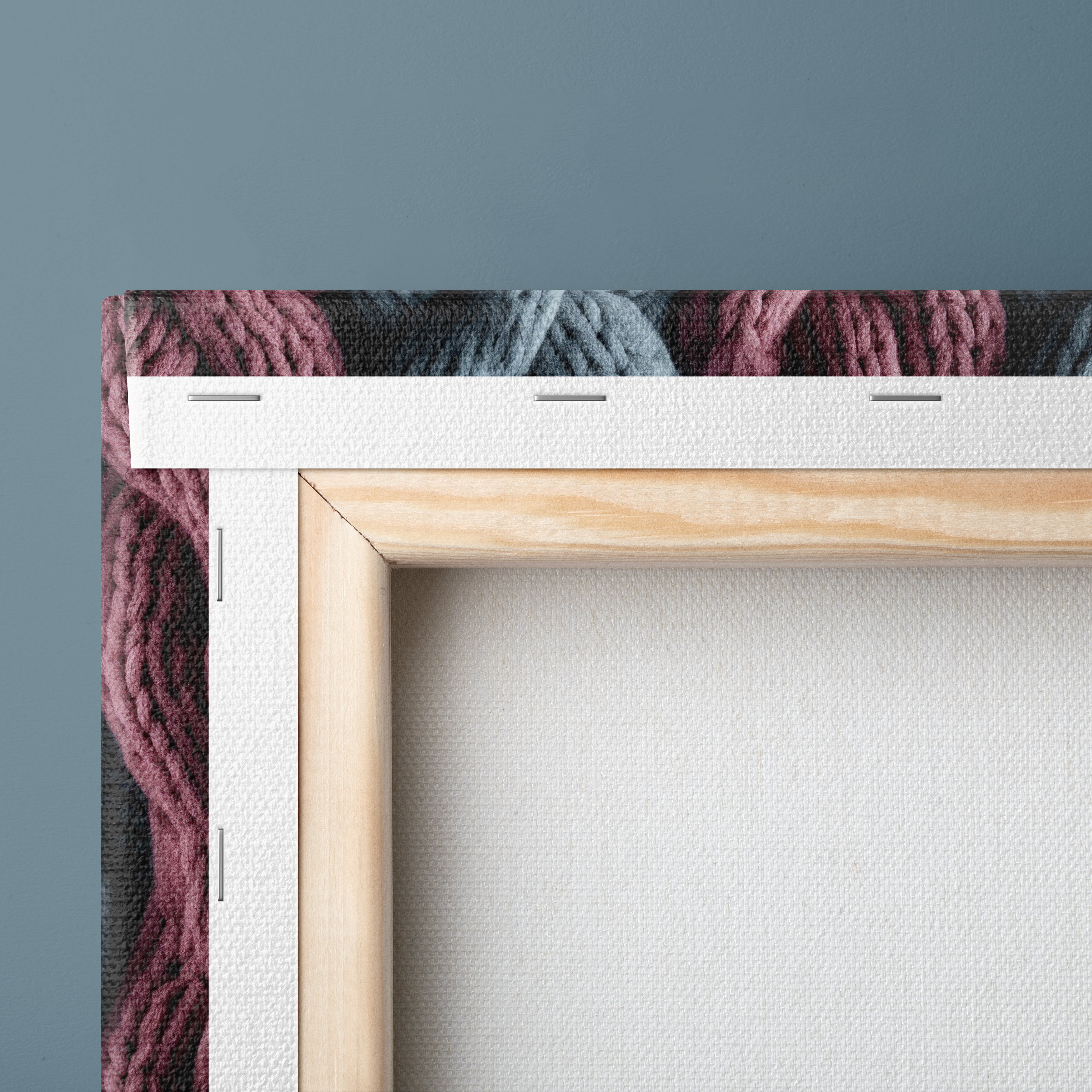 Each canvas is tightly folded and stapled on finger-jointed knotless European pine stretcher bars, with wedges for tension, using sustainably sourced wood for enduring strength and eco-friendly quality.
